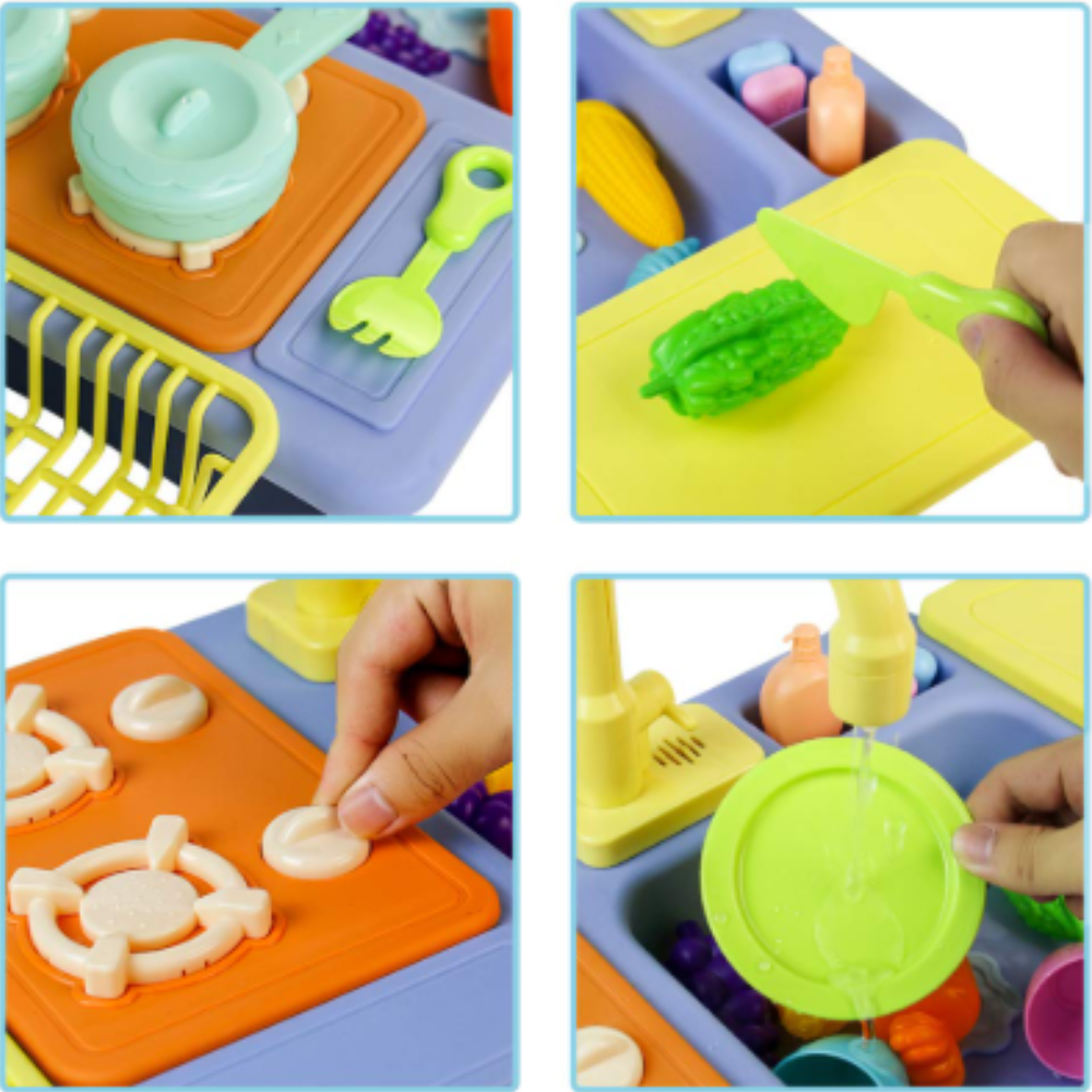 Παιδική κουζίνα με ηλεκτρικό κυκλοφορούμενο νερό και ρεαλιστική βρύση, ιδανική για παιχνίδι ρόλων που ενισχύει την πρακτική ικανότητα και τη... Read more
