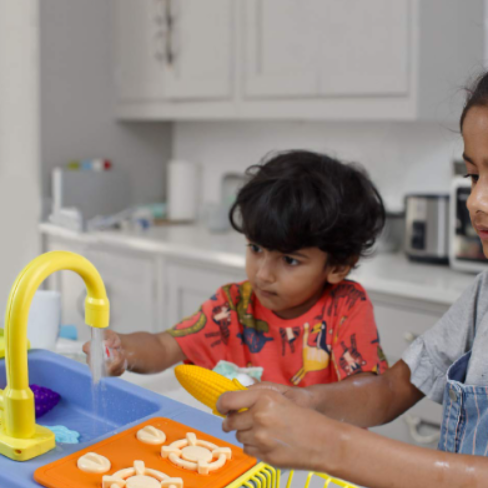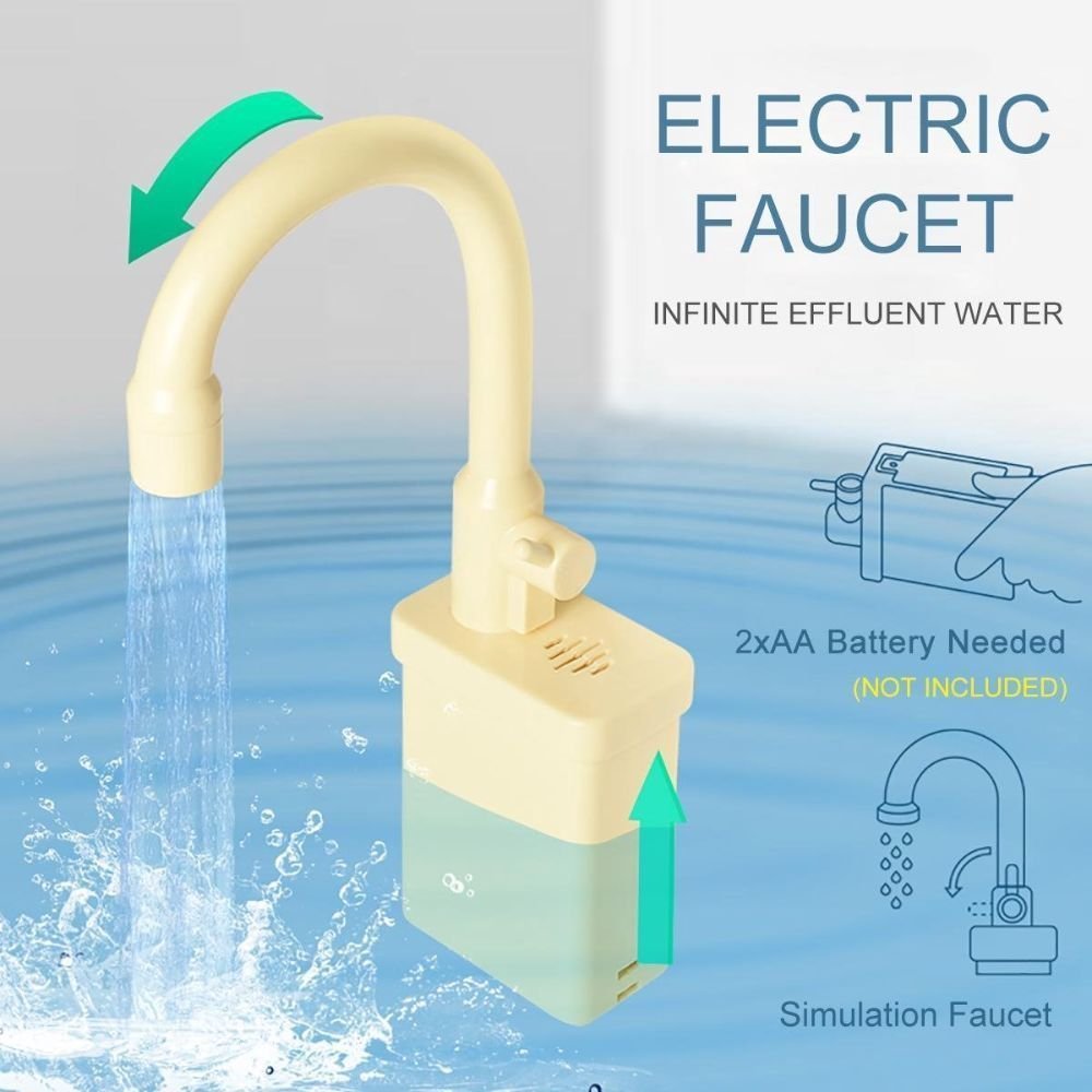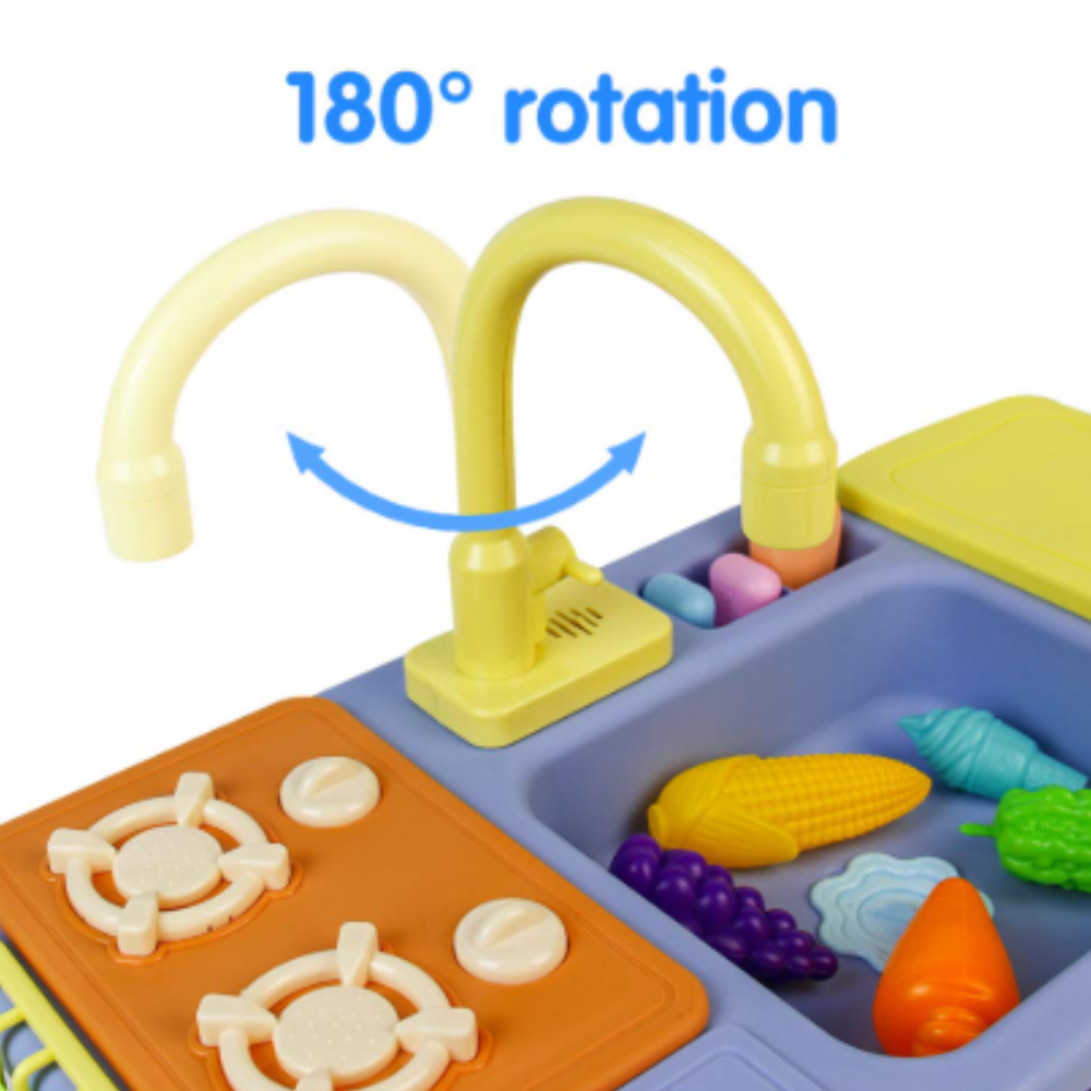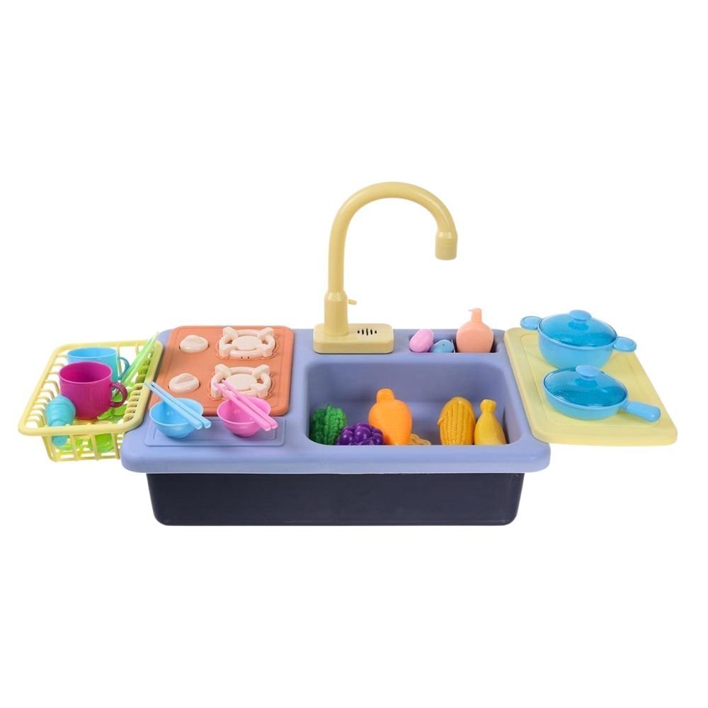 Σετ Παιδικός Ρεαλιστικός Νεροχύτης με Ηλεκτρική Βρύση 180°, Κυκλοφορία Νερού & 18 Αξεσουάρ για Δημιουργικό Παιχνίδι