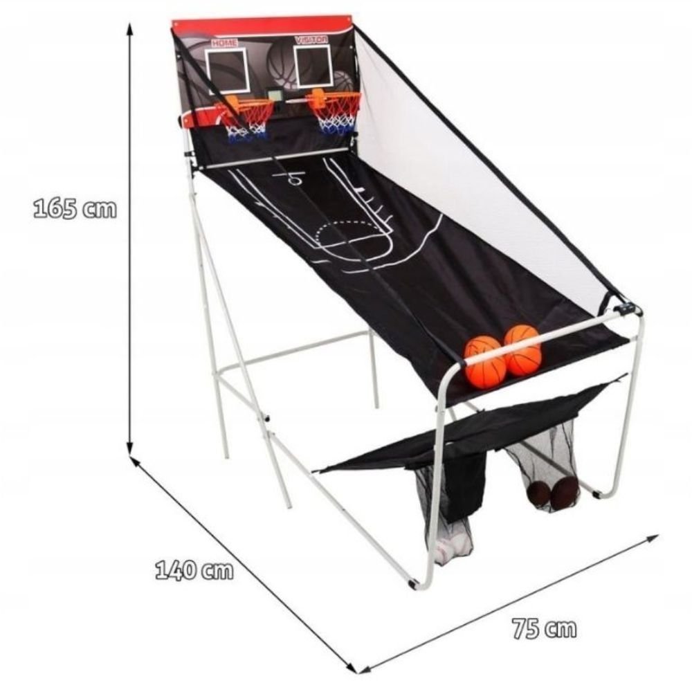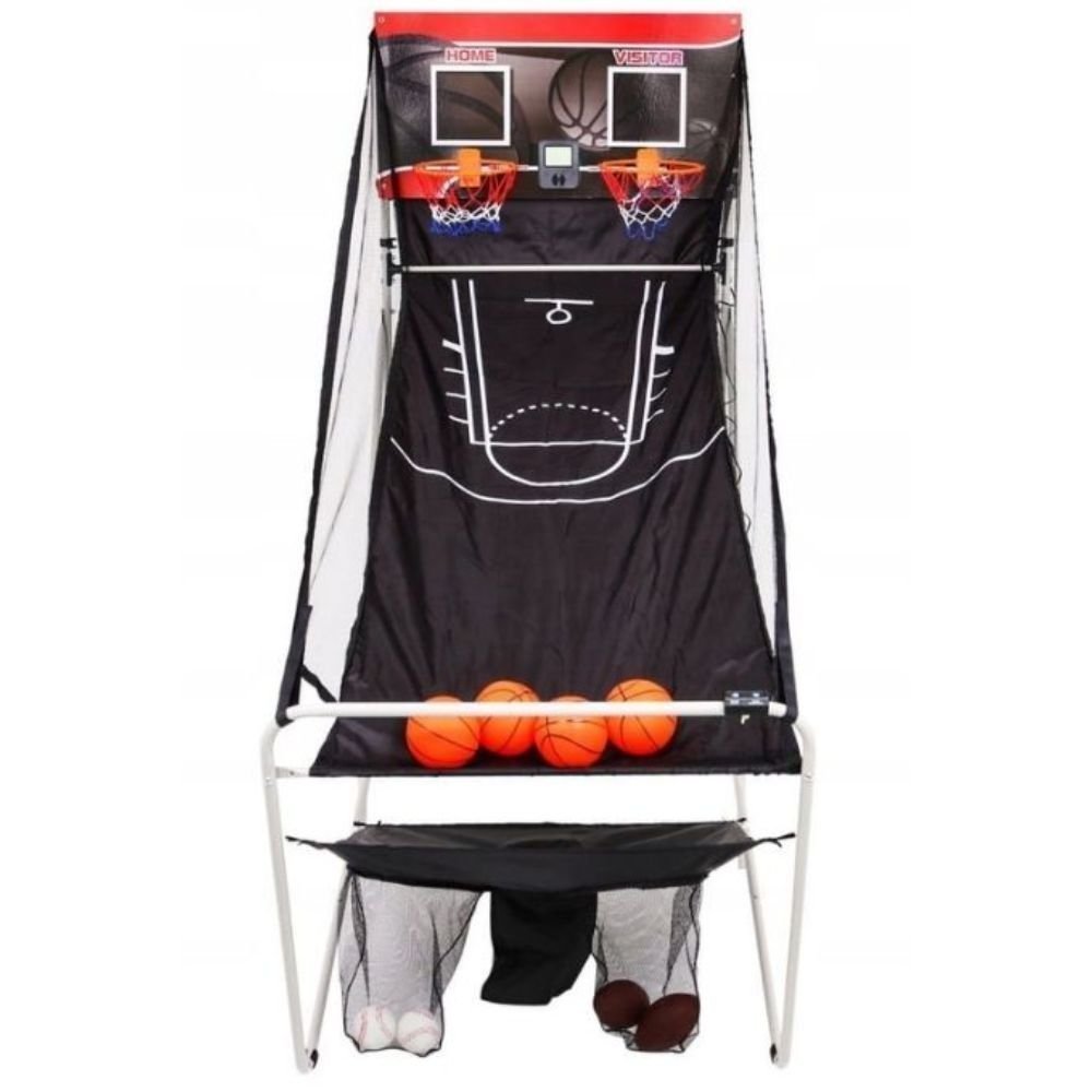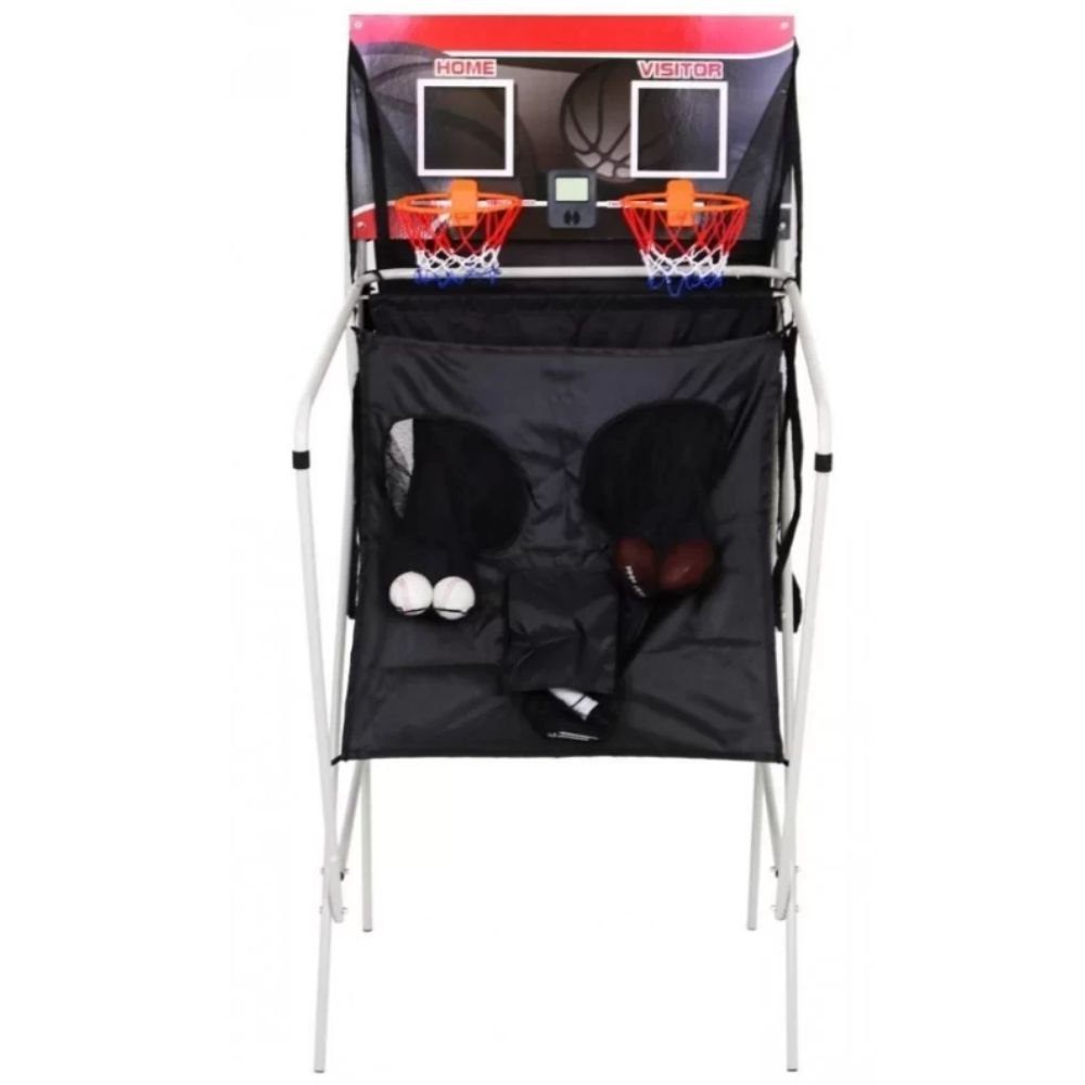 Διαθέτει σταθερό σκελετό, καλάθι μπάσκετ και πλαϊνές επιφάνειες επιστροφής της μπάλας, ενώ ο αναδιπλούμενος σχεδιασμός του επιτρέπει εύκολη αποθήκευση χωρίς να καταλαμβάνει χώρο. Το σετ περιλαμβάνει 4 μπάλες μπάσκετ, 2 μπάλες μπέιζμπολ, 2 μπάλες ποδοσφαίρου, αντλία και κιτ τοποθέτησης, ώστε να αρχίσετε το παιχνίδι άμεσα.