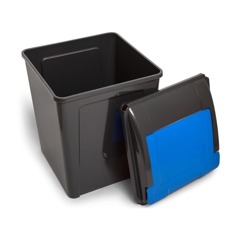 Ο κάδος είναι επίσης ιδανικός για οργάνωση ανακυκλώσιμων, με το μπλε καπάκι να βοηθά στον άμεσο διαχωρισμό υλικών. Το ορθογώνιο σχήμα του εξοικονομεί χώρο και του επιτρέπει να τοποθετούνται σε γωνίες, κάτω από πάγκους ή δίπλα σε άλλα έπιπλα.