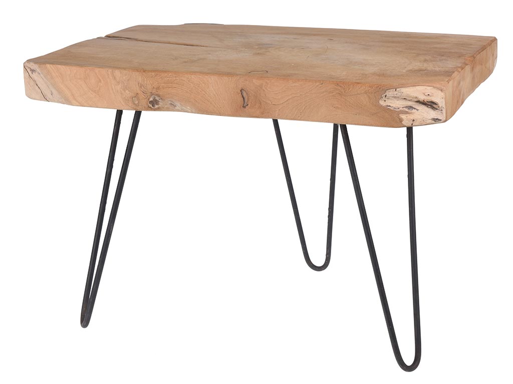 Ξύλινο Τραπεζάκι Σαλονιού με μεταλλικό σκελετό, 50x40x37 cm, Teak End Table – Aria Trade