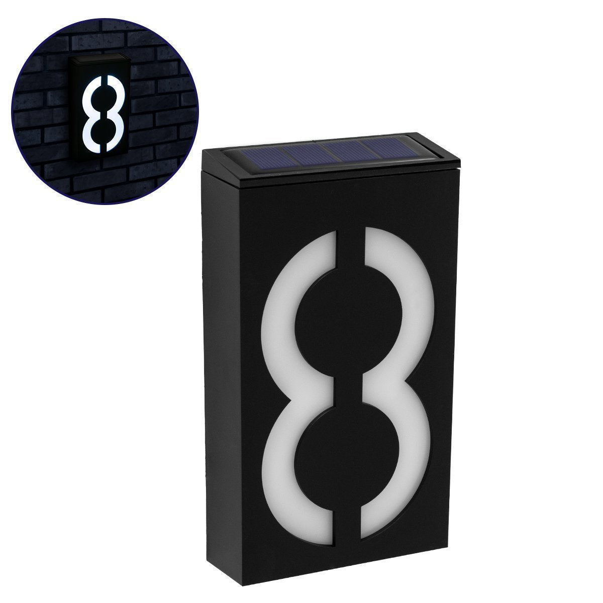 71518 Αυτόνομο Ηλιακό Φωτιστικό LED SMD 1W 100lm με Ενσωματωμένη Μπαταρία 1000mAh – Φωτοβολταϊκό Πάνελ με Αισθητήρα Ημέρας-Νύχτας για Αρίθμηση Δρόμου με Αριθμό 8 Αδιάβροχο IP55 Ψυχρό Λευκό 6000K