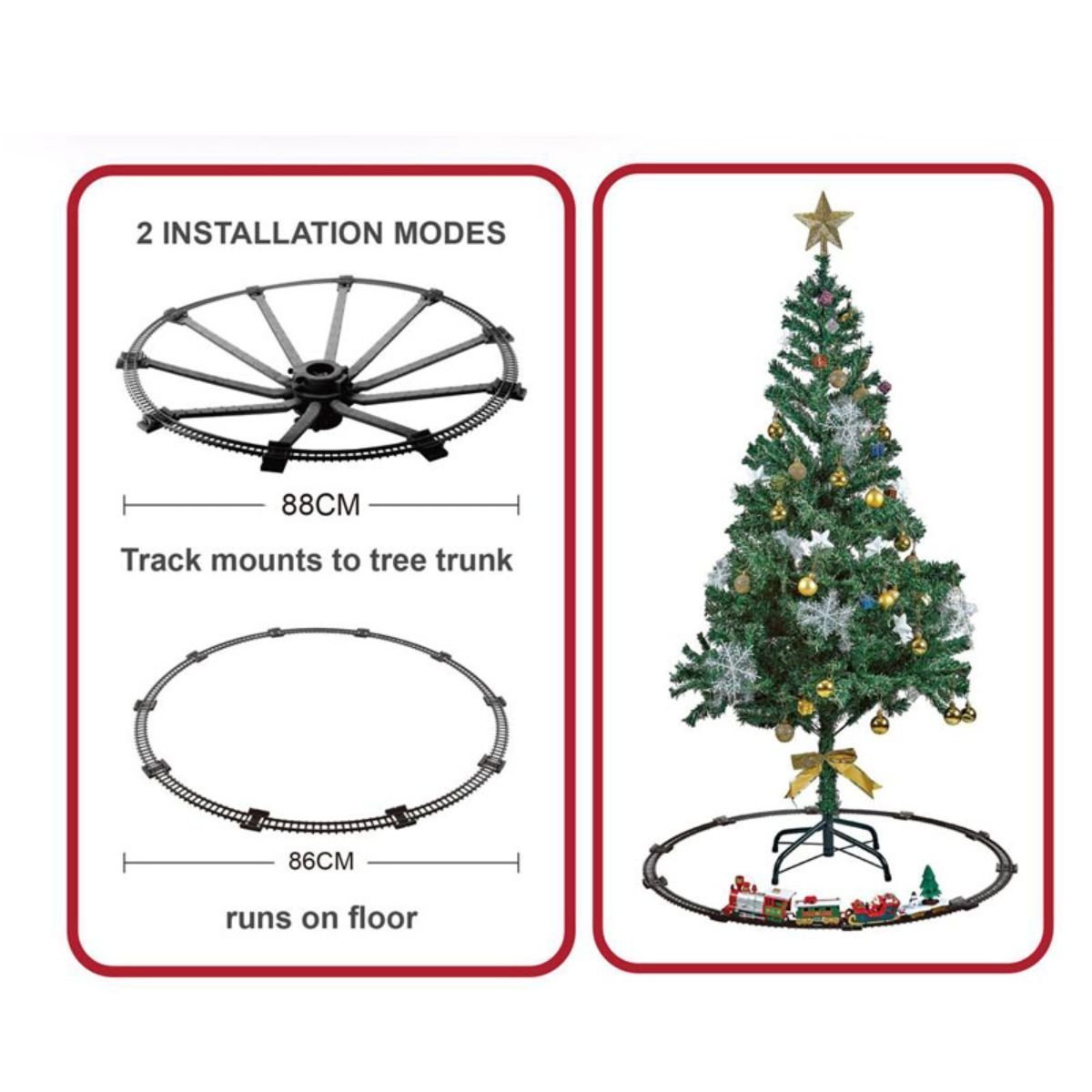 Σετ Ηλεκτρικό Τρενάκι Χριστουγεννιάτικου Δέντρου και Σιδηροδρόμος 88cm με Φως & Μουσική για Παιδιά 3+ Ετών