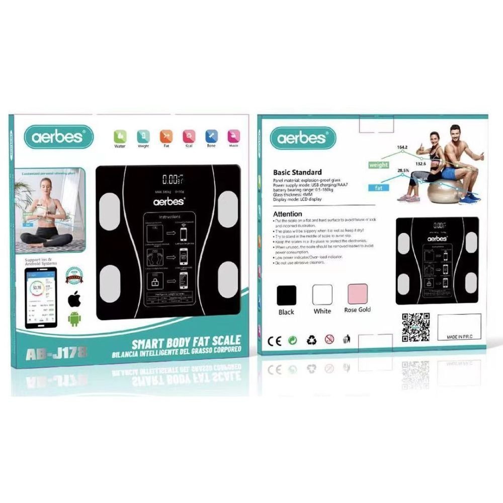 Aerbes Έξυπνη Ζυγαριά Μπάνιου Bluetooth για Ανάλυση Σώματος έως 180kg AB-J178
