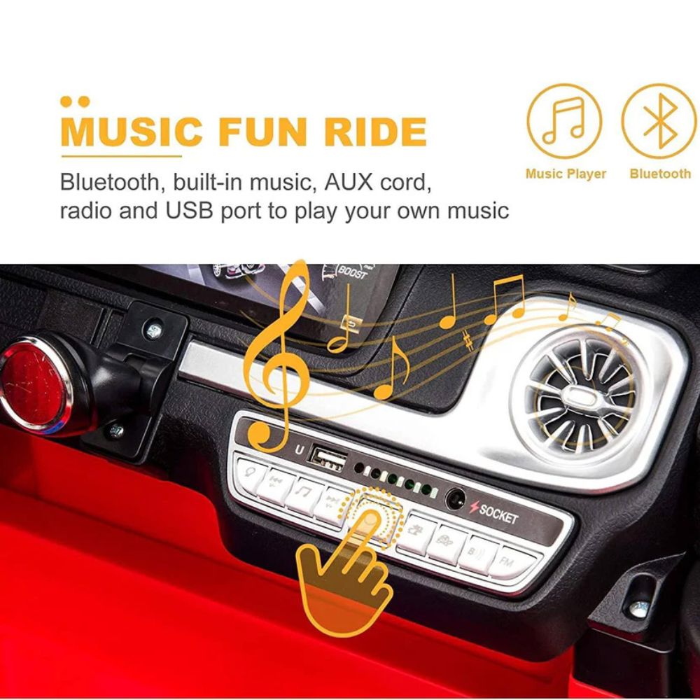 Η εμπειρία οδήγησης ενισχύεται με μπροστινά και πίσω φώτα, ήχο κινητήρα, κόρνα και ενσωματωμένη μουσική MP3. Η πλήρως εξοπλισμένη κονσόλα περιλαμβάνει θύρα USB και αναγνώστη TF Card, ώστε τα παιδιά να ακούν την αγαπημένη τους μουσική κατά τη διάρκεια της βόλτας.