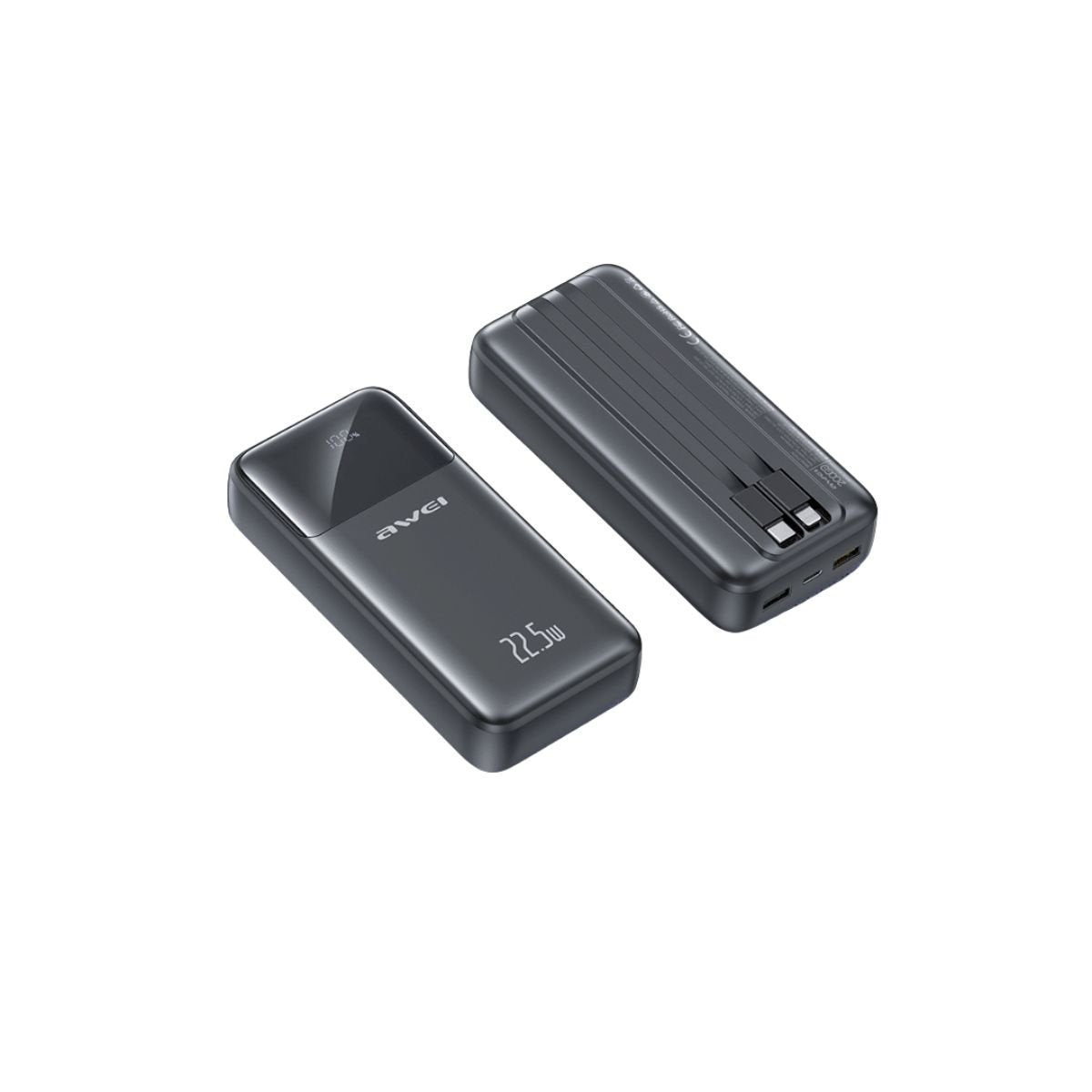 AWEI Power Bank 20.000mAh 22.5W Fast Charging με Ενσωματωμένα Καλώδια & Οθόνη Ένδειξης Φόρτισης, Μαύρο PK107K