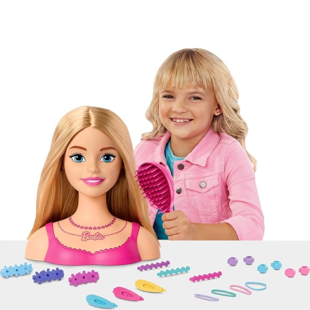 Barbie Σετ Styling Κεφαλή Κούκλας με Ξανθά Μαλλιά, 20 Αξεσουάρ για Χτενίσματα & Μακιγιάζ