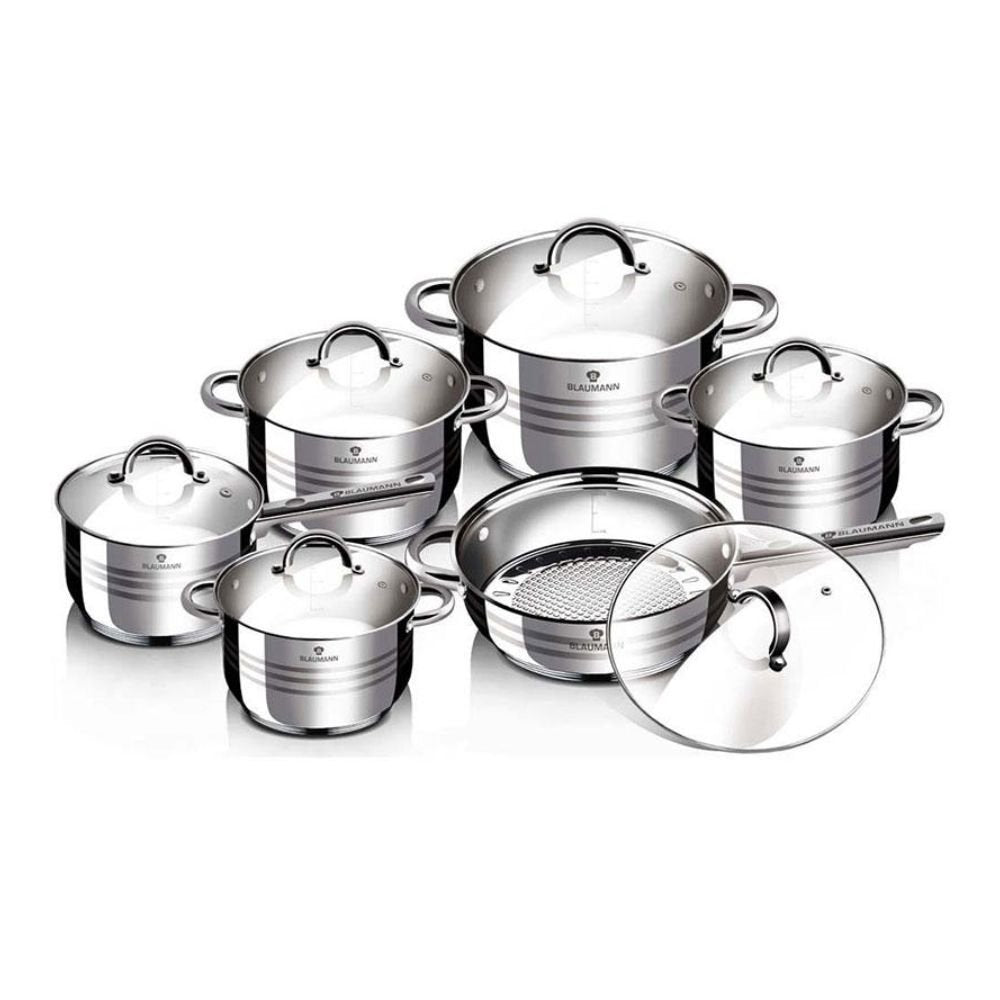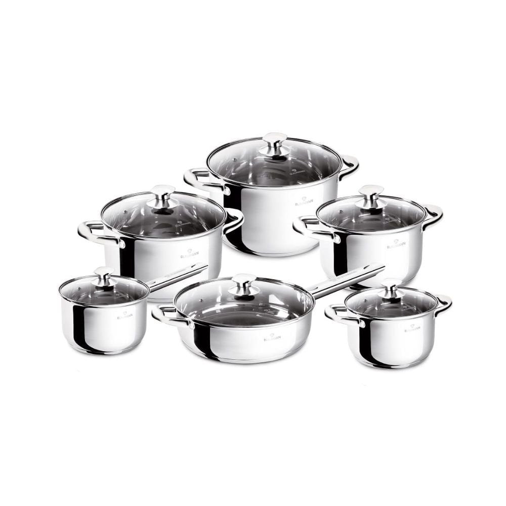 Blaumann Gourmet Line BL-3875 Σετ Μαγειρικών Σκευών 12 Τεμαχίων , Ανοξείδωτα Σκεύη με Πάτο 5 Στρώσεων και Κατάλληλα για Επαγωγή