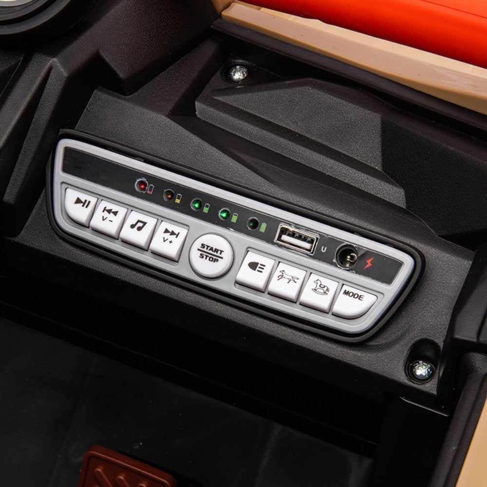 Το Buggy διαθέτει εντυπωσιακά LED φώτα, ενσωματωμένα ηχητικά εφέ στο τιμόνι και πλήρες σύστημα ψυχαγωγίας με MP3, USB και ρυθμιστή έντασης, επιτρέποντας στο παιδί να απολαμβάνει τη βόλτα του με τη δική του μουσική. Η ισχυρή μπαταρία προσφέρει χρόνο παιχνιδιού 1–2 ωρών, ενώ η φόρτιση διαρκεί 10–12 ώρες για μέγιστη διάρκεια ζωής.