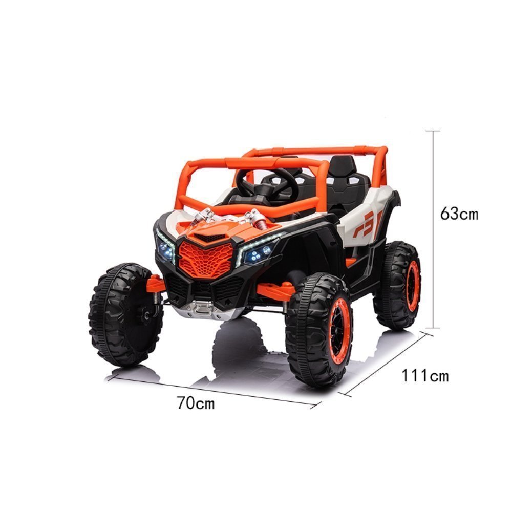 Το Παιδικό Ηλεκτροκίνητο Buggy 4×4 12V αποτελεί μια εξαιρετική επιλογή για μικρούς λάτρεις της οδήγησης, προσφέροντας πραγματική περιπέτεια με μοναδικό στιλ και δυναμική εμφάνιση. Το πορτοκαλί χρώμα του και ο σχεδιασμός τύπου UTV το καθιστούν ιδιαίτερα εντυπωσιακό, ενώ η τετρακίνηση με διπλούς κινητήρες 12V4.5Ah εξασφαλίζει ισχυρή απόδοση και ομαλή κίνηση ακόμη και σε πιο απαιτητικές επιφάνειες.