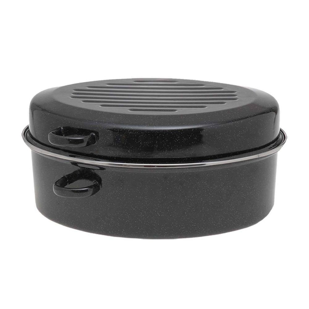 DOLPHIN Οβάλ Γάστρα Εμαγιέ 7L με Καπάκι για Εστία και Φούρνο 39×28×16cm, Μαύρο