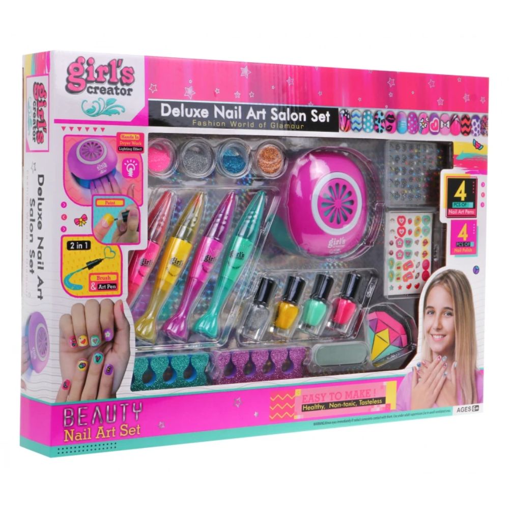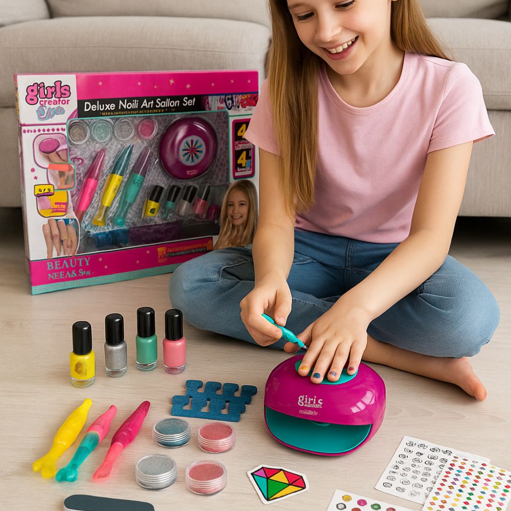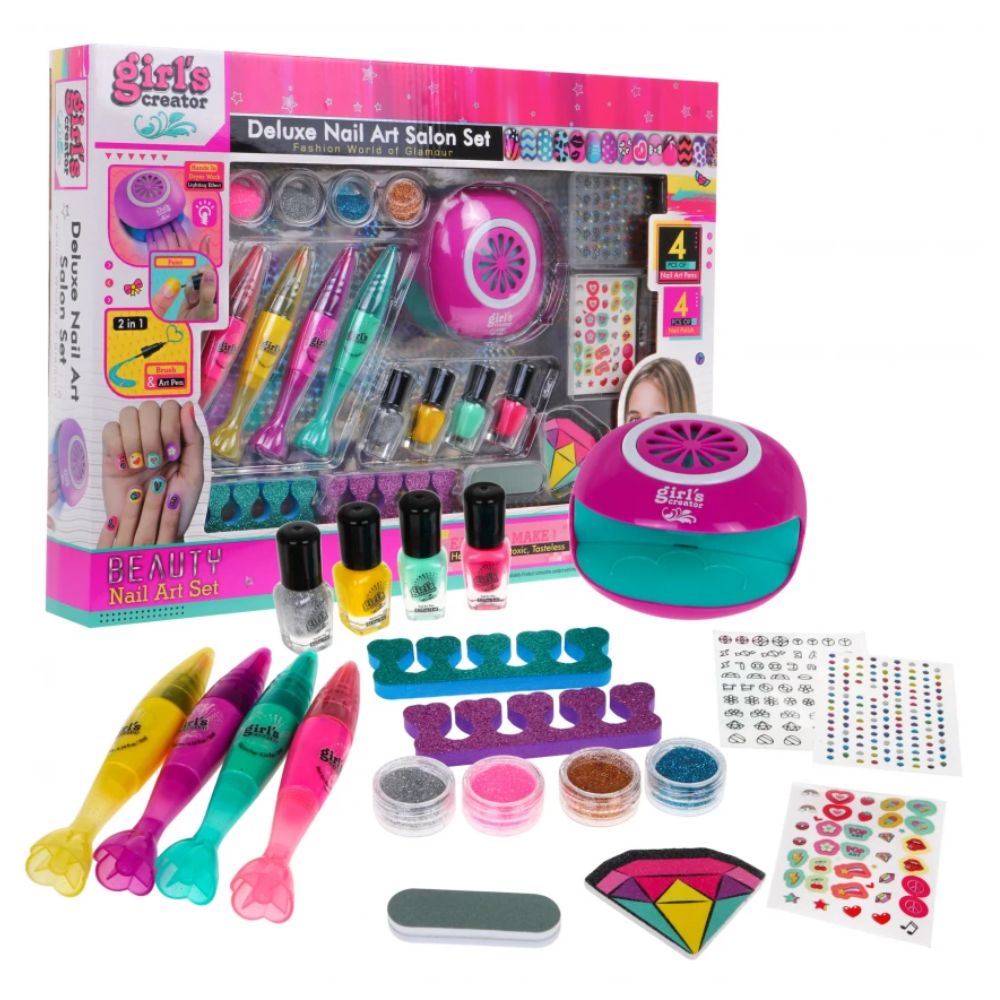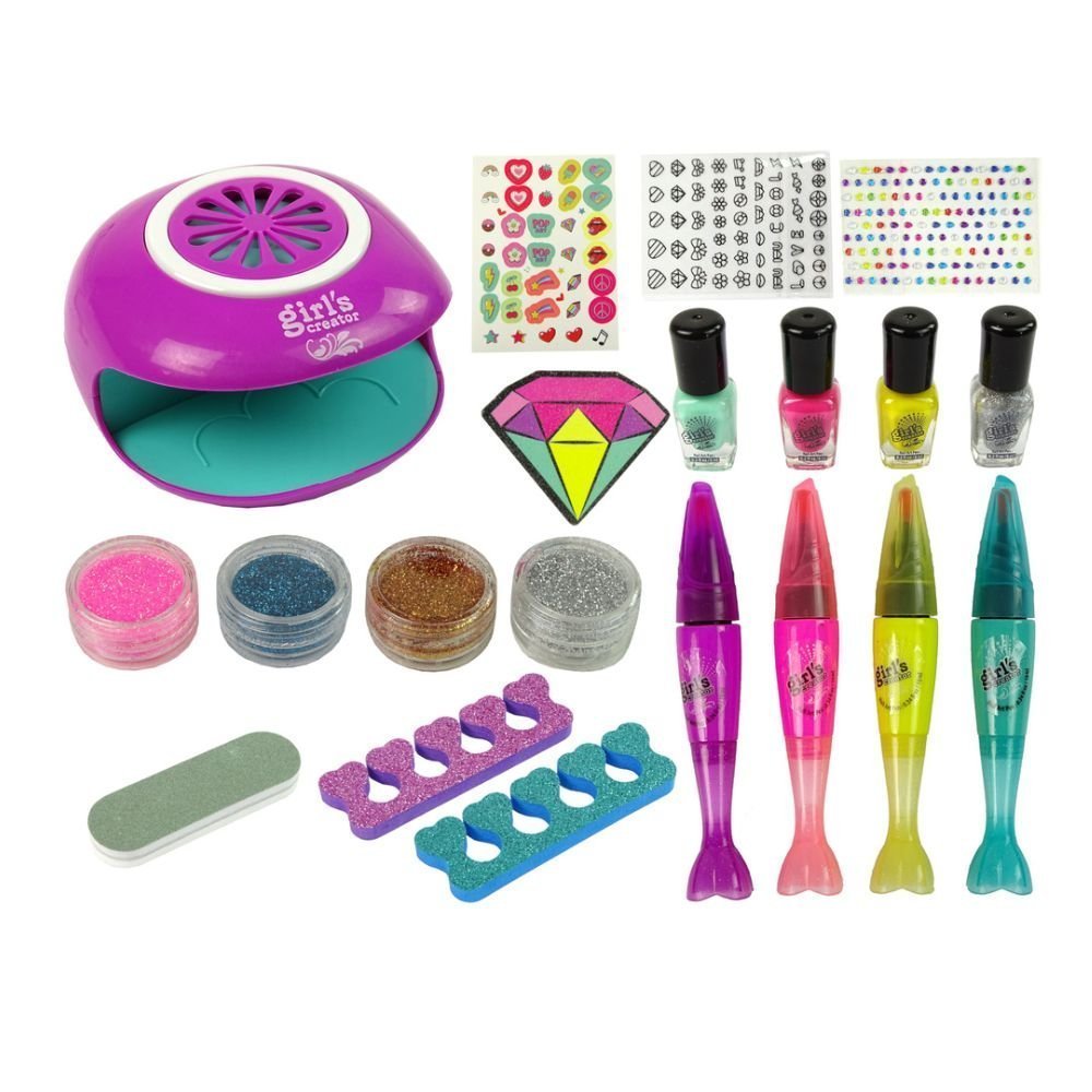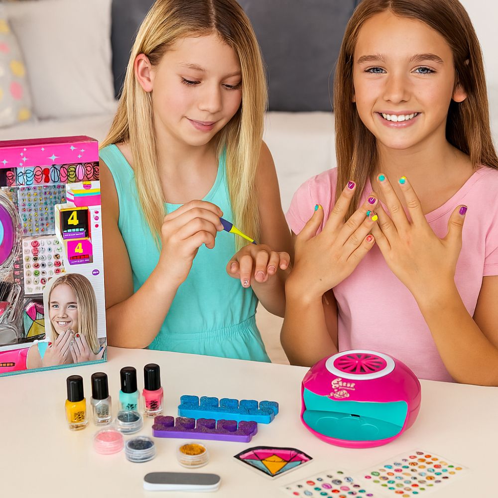Ολοκληρωμένο Παιδικό Σετ Μανικιούρ Δημιουργίας Νυχιών με Στεγνωτήρα, Βερνίκια, Glitter & Αυτοκόλλητα
