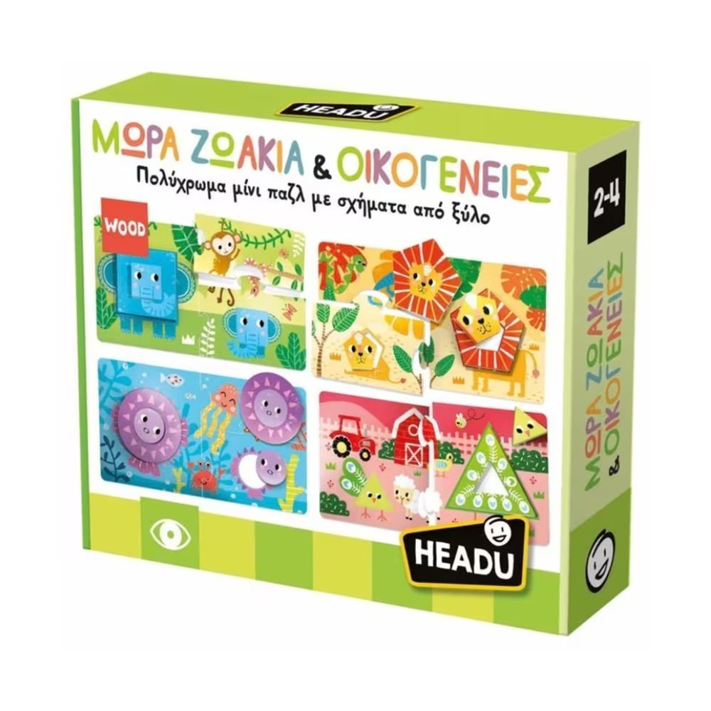 Headu Μωρά Ζωάκια και Οικογένειες, Εκπαιδευτικό Ξύλινο Παζλ με Σχήματα (2-4 ετών)