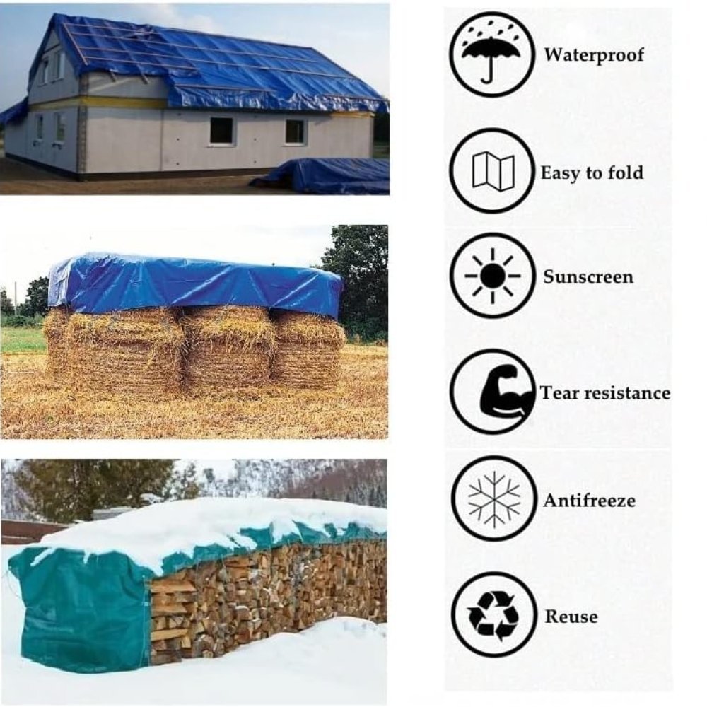 JADEVER Πολυχρηστικό Αδιάβροχο Βαρύ Κάλυμμα Μουσαμά 4Χ6m,110gsm με Επένδυση & Αλουμινένιους Κρίκους, Μπλε