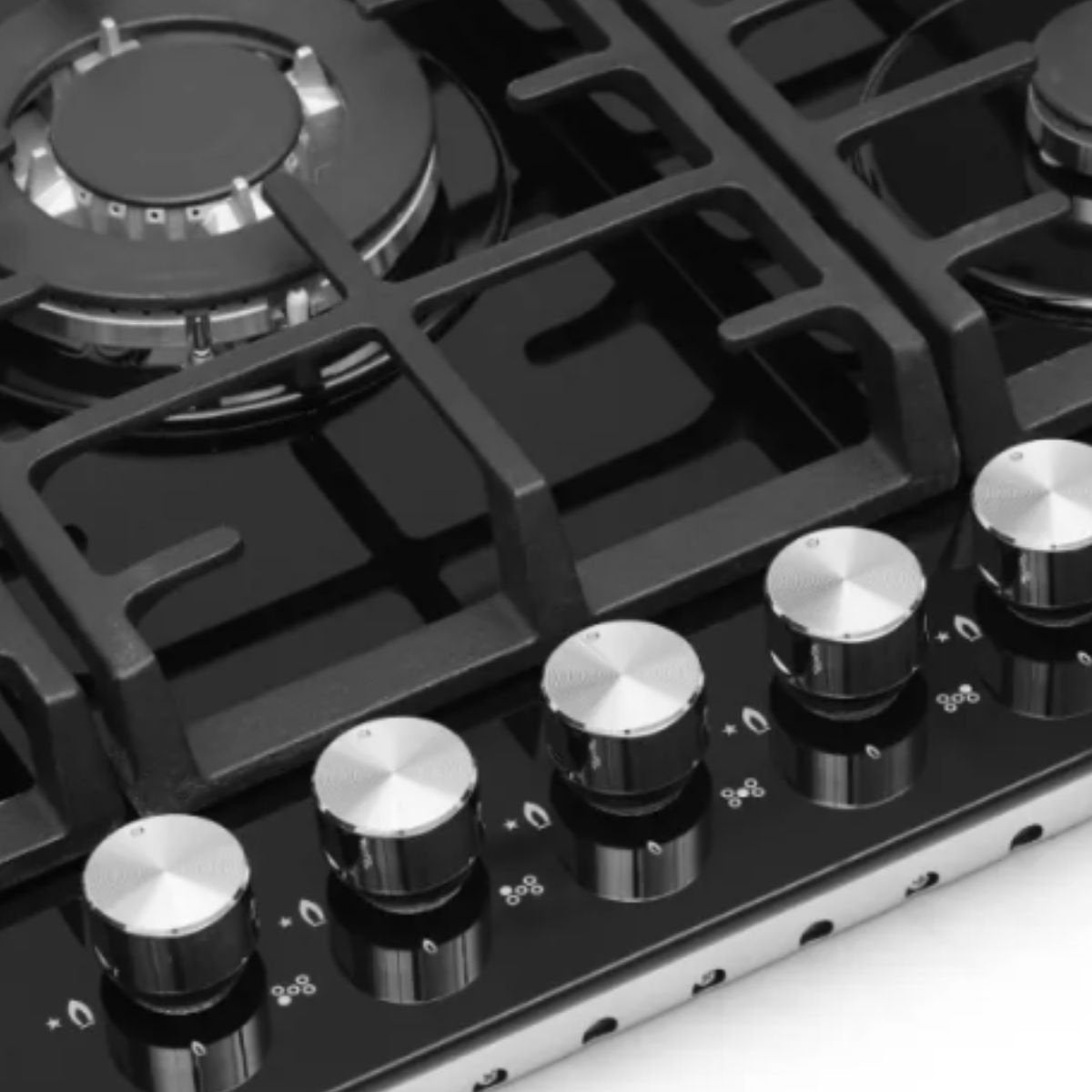 • Εντοιχιζόμενη εστία υγραερίου 75cm με επιφάνεια μαύρου γυαλιού.