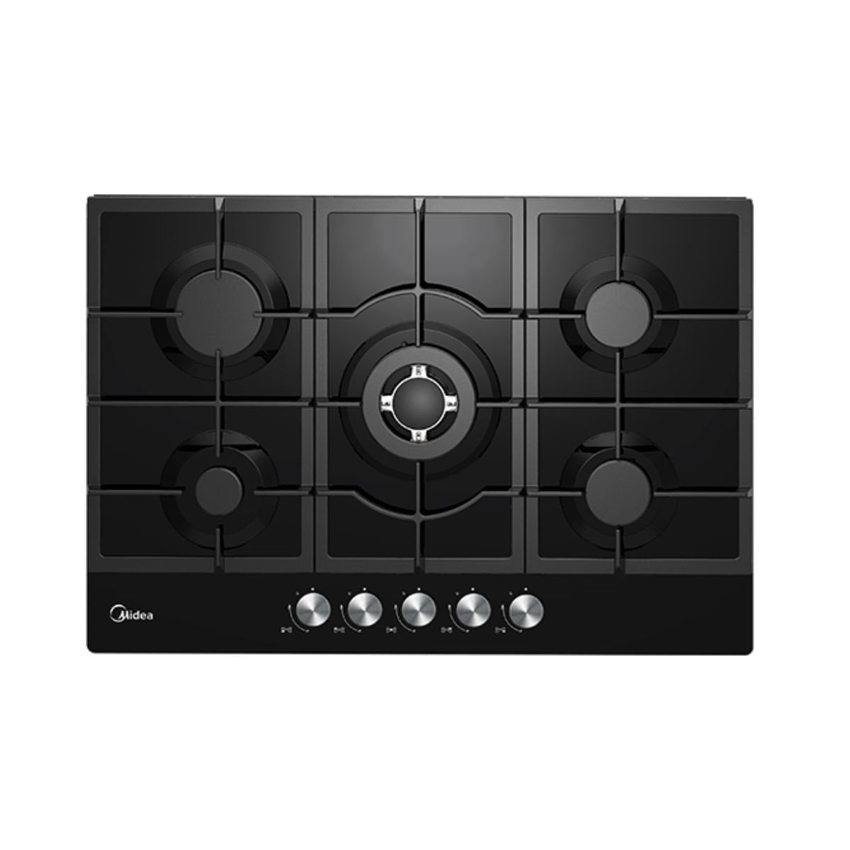 Midea Εστία Υγραερίου Εντοιχιζόμενη 75cm με 5 Ζώνες, Καυστήρας WOK & Χυτοσιδηρές Βάσεις, MG75095TGB Μαύρο