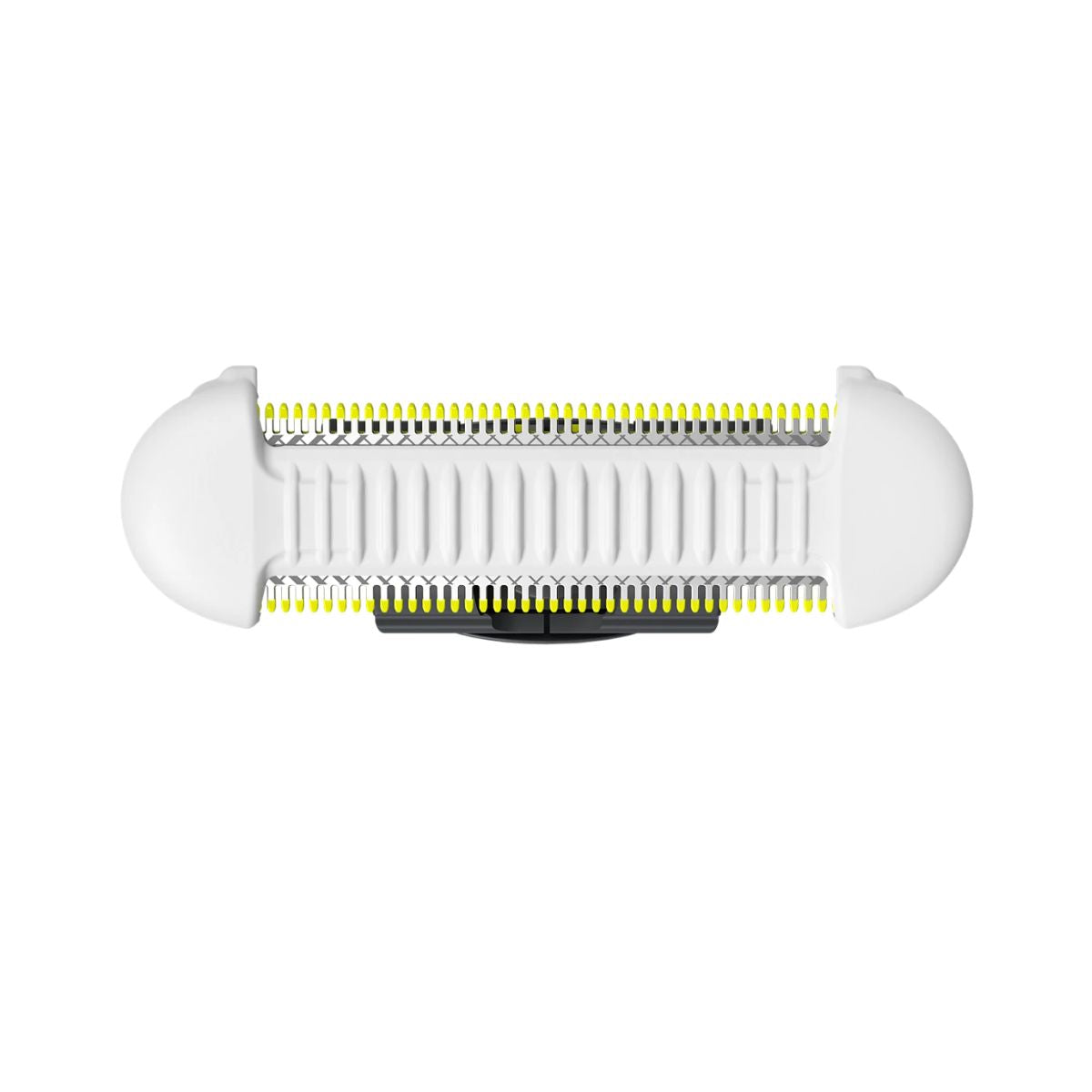 Επιπλέον, η τεχνολογία OneBlade είναι πλέον κατάλληλη και για ευαίσθητες περιοχές: η ταχύτατα κινούμενη λεπίδα μετακινείται 100 φορές το δευτερόλεπτο, κουρεύοντας κάθε τρίχα, ενώ τα στρογγυλεμένα άκρα και η προστατευτική γέφυρα SkinProtect βοηθούν στη μείωση ερεθισμών.