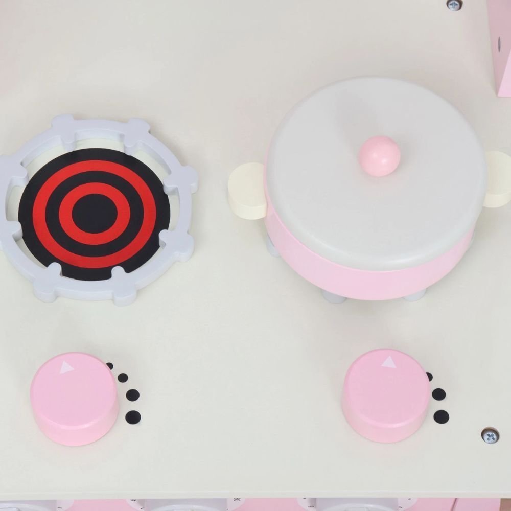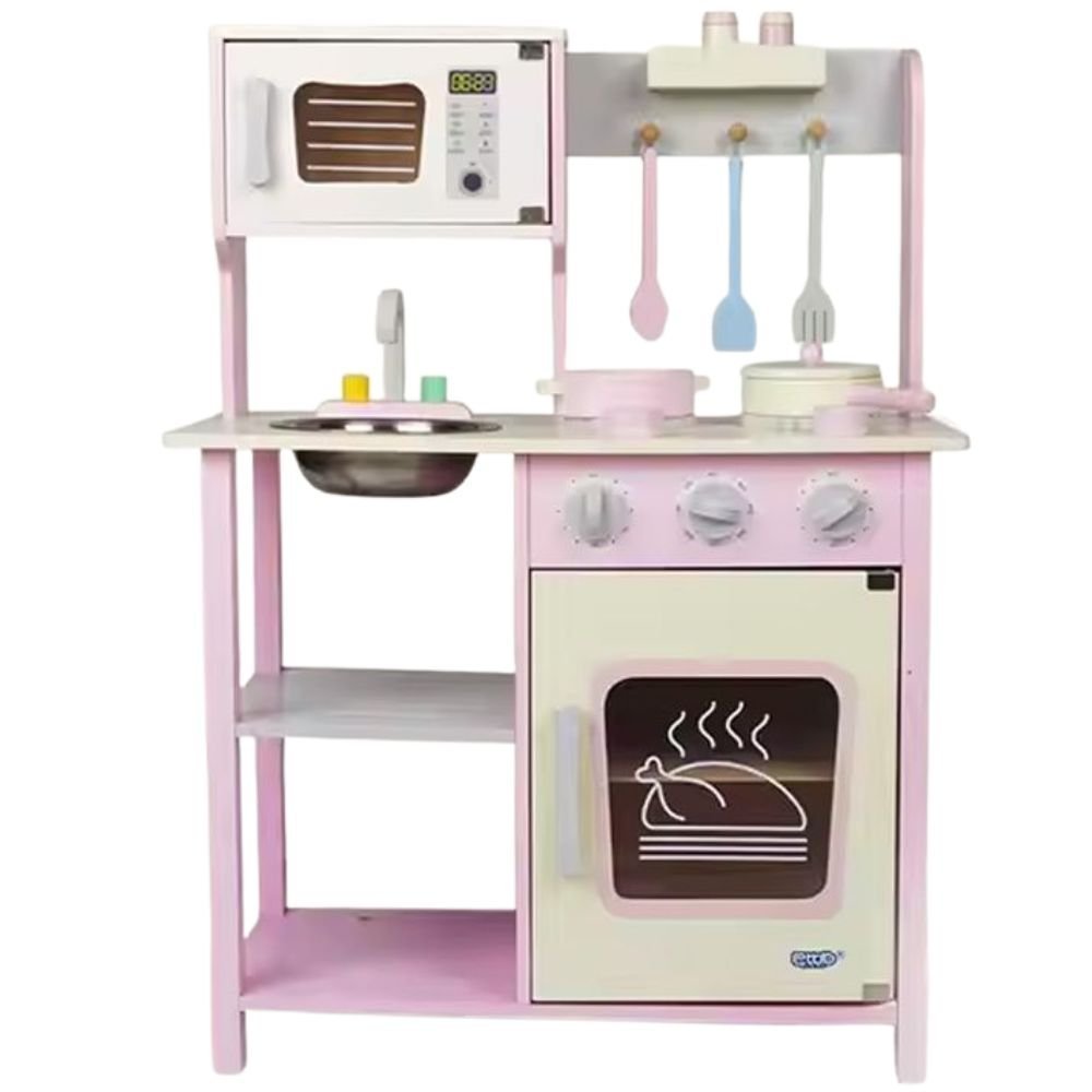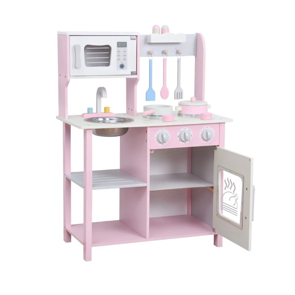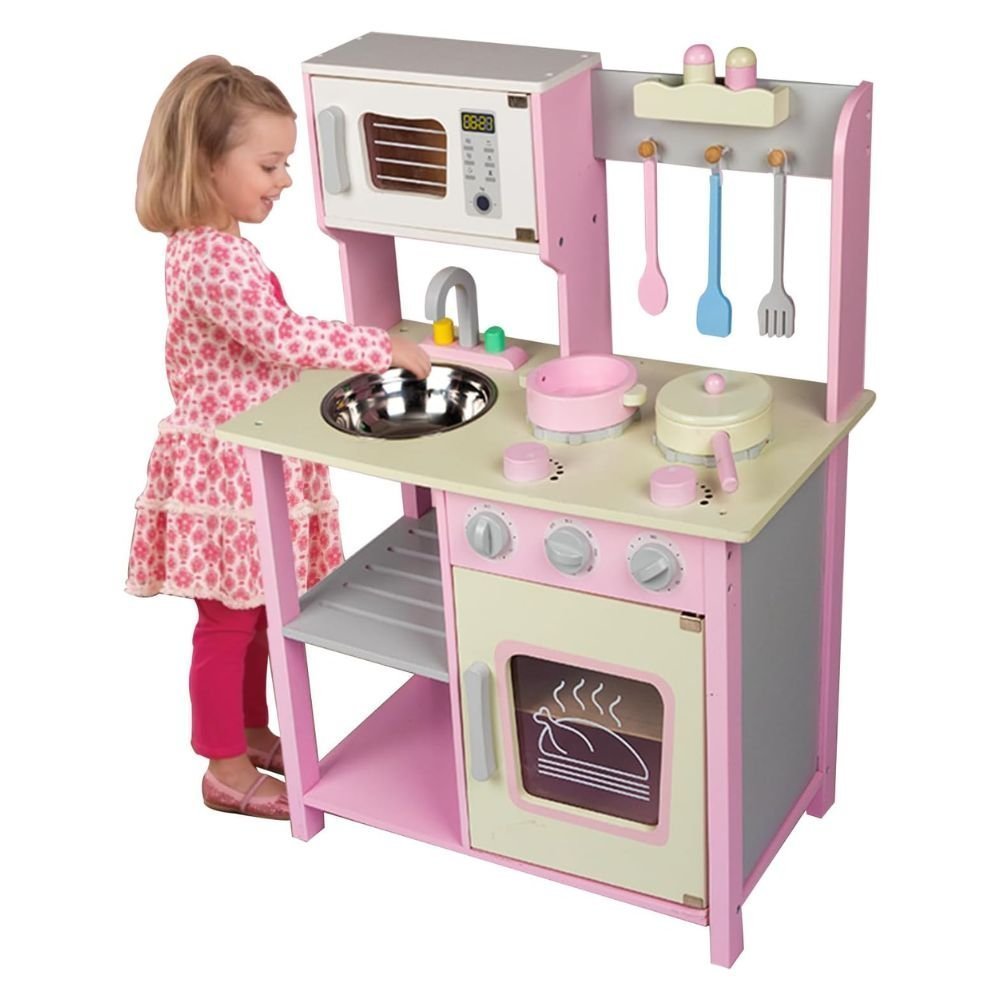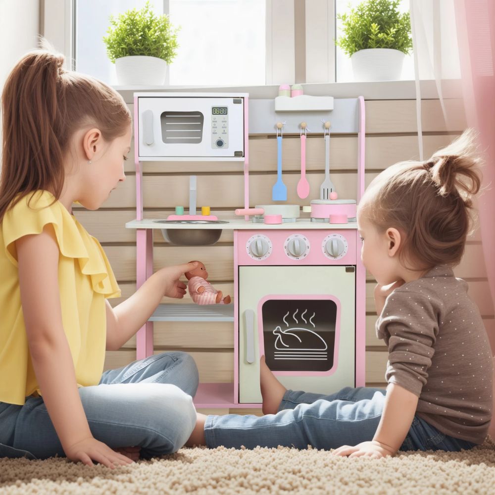 PHOOHI Ξύλινη Παιδική Κουζίνα με Ροζ Πριγκιπικό Στυλ