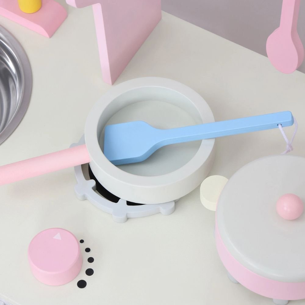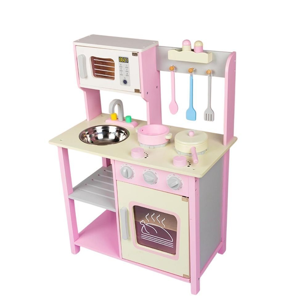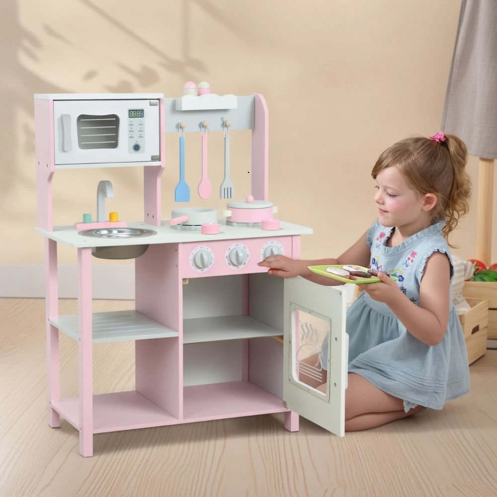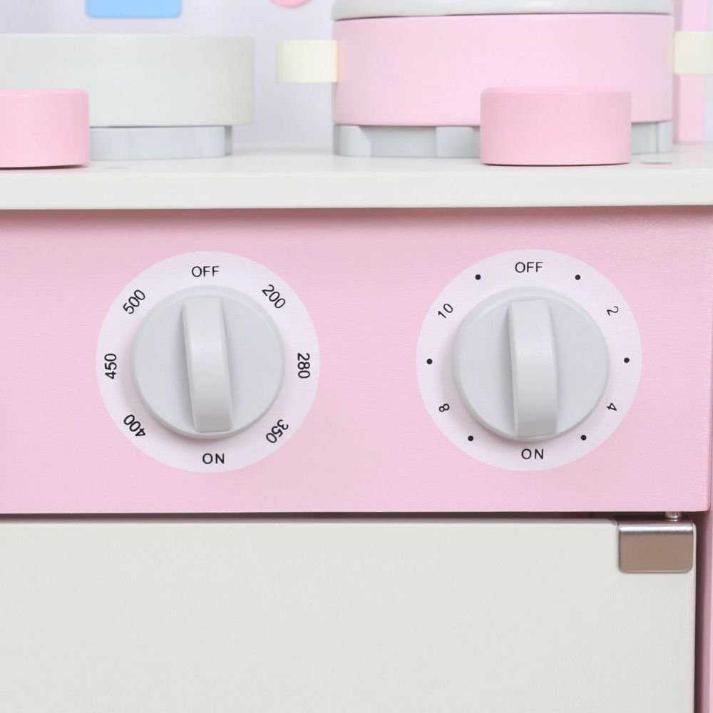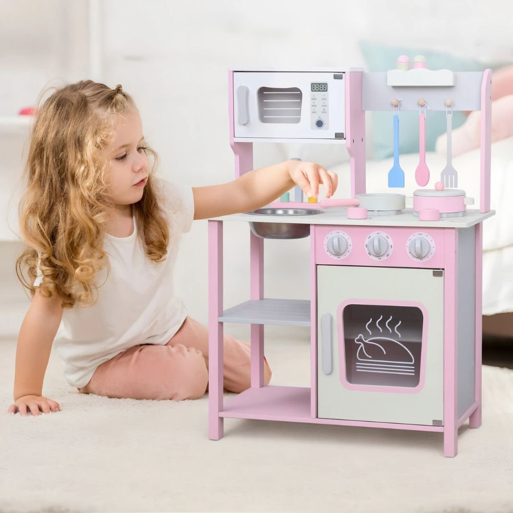 PHOOHI Ξύλινη Παιδική Κουζίνα με Ροζ Πριγκιπικό Στυλ
