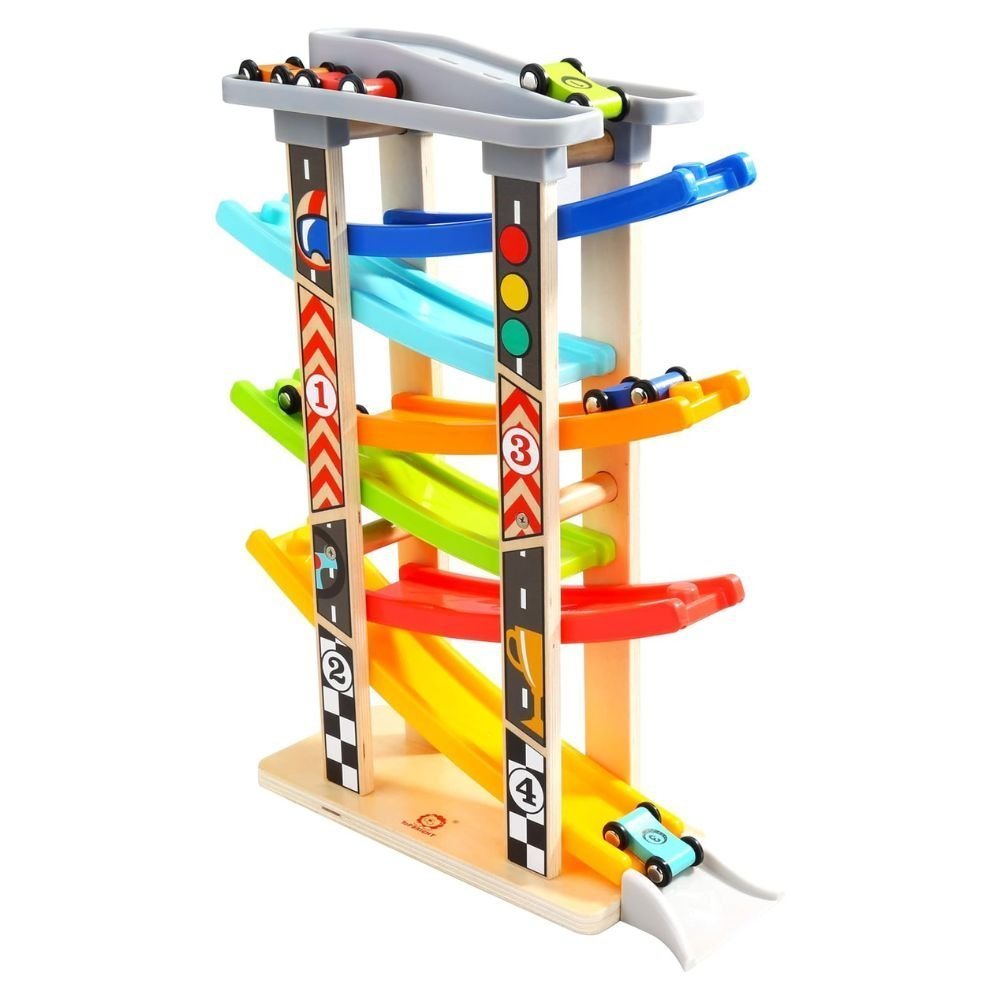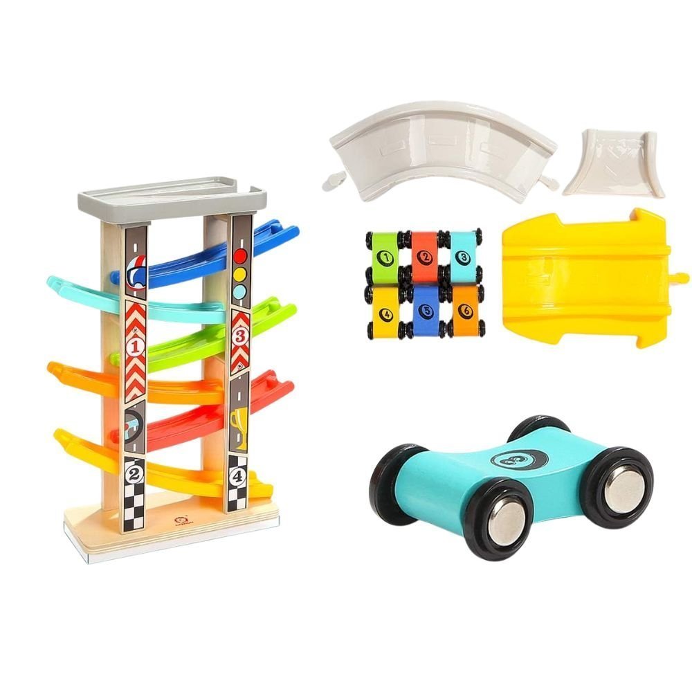 PHOOHI Ξύλινη Πίστα Αυτοκινήτων Montessori, Εκπαιδευτικό STEM Παιχνίδι για Νήπια