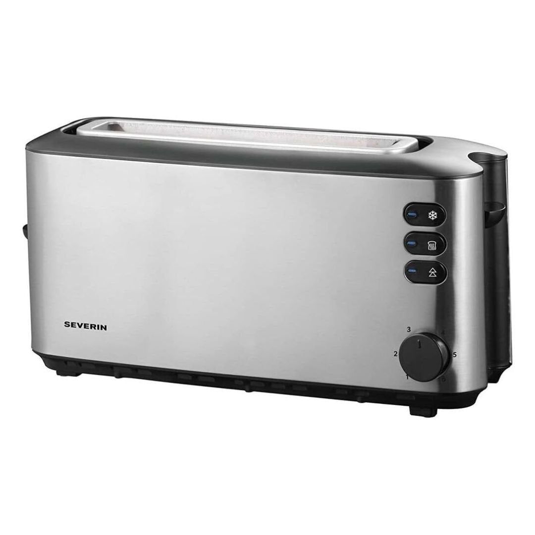 SEVERIN Αυτόματη Φρυγανιέρα 1000W με Μακριά Υποδοχή για 2 Φέτες, Ανοξείδωτο Ατσάλι Διπλού Τοιχώματος, Αυτόματη Ανύψωση & Ενσωματωμένη Σχάρα για Ζέσταμα Ψωμιού AT-2515