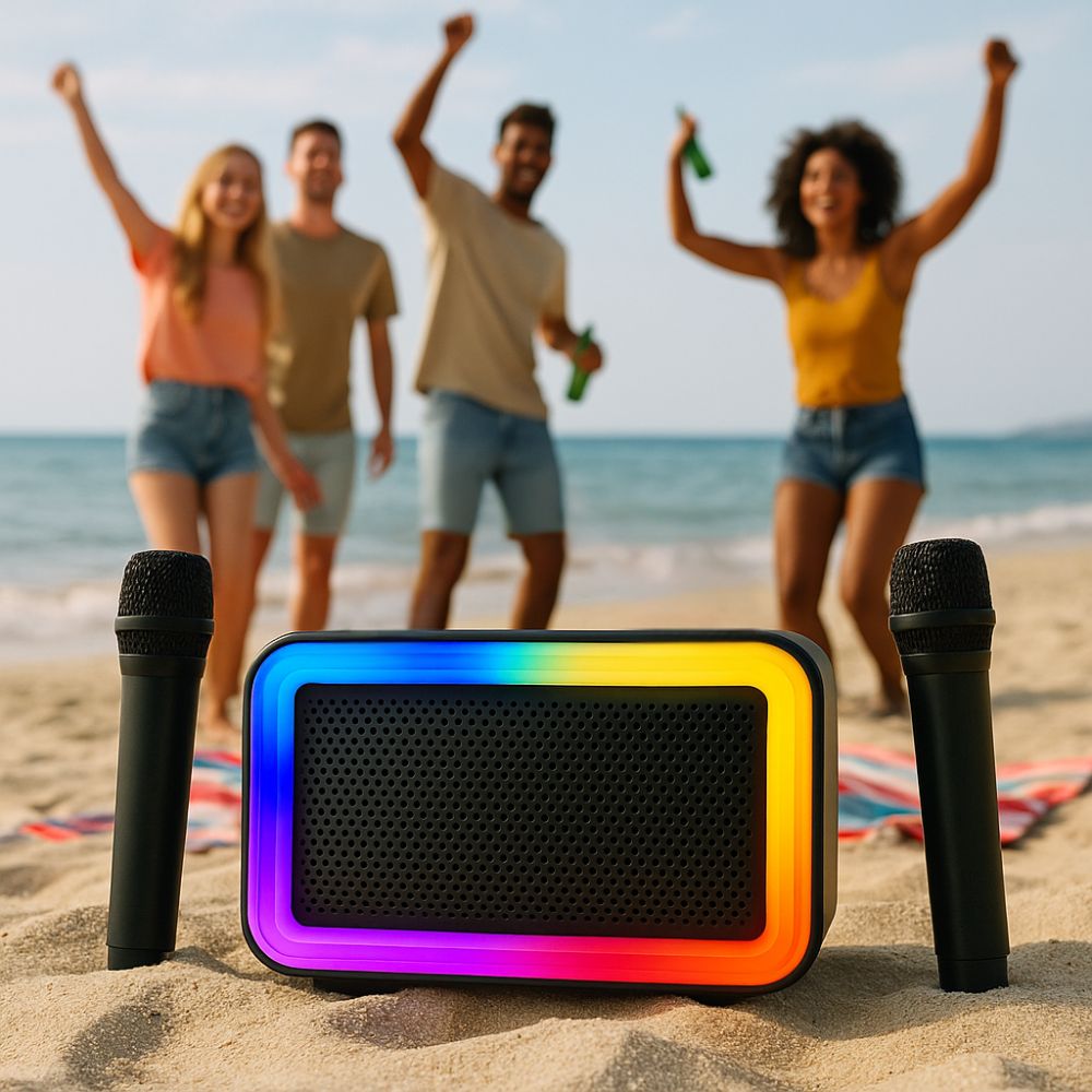 Sing-E Φορητό Ηχείο Bluetooth 4″ με LED Φωτισμό, 2 Ασύρματα Μικρόφωνα & Super Bass, ZQS1491W