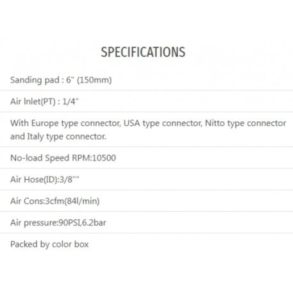 [video width="1280" height="720" mp4="https://sys.dmtrade.cy/wp-content/uploads/2022/07/videoplayback-20.mp4"][/video] Χαρακτηριστικά: Διάμετρος πέλματος: 150mm Κατανάλωση αέρα: 84 Lit / min Πίεση 6.2bar Στροφές χωρίς φορτίο: 10.500rpm... Read more